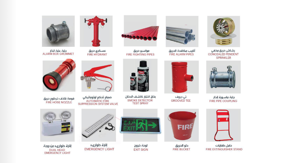 تركيب وصيانة أنظمة إطفاء وإنذار الحريق للمباني السكنية والتجارية والصناعية وفقاً للمواصفات المعتمدة.