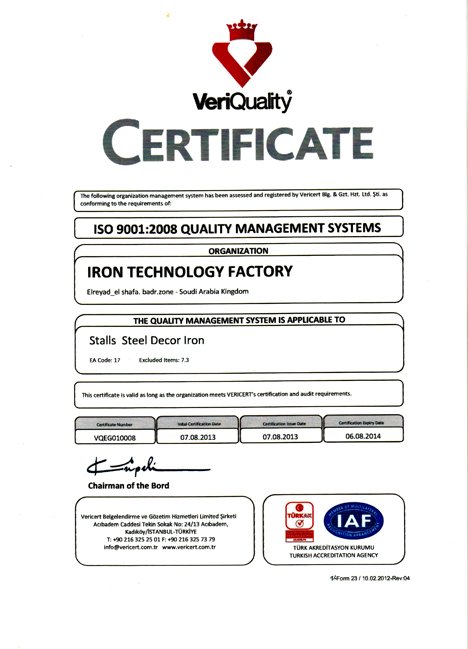 المصنع ايضا حاصل على عدة شهادات دوليه منها :
