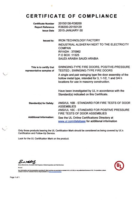 شهادة UL للابواب المقاومه للحريق